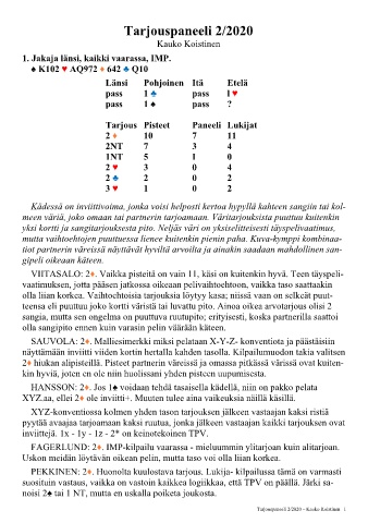 SAUVOLA: 2♦. Malliesimerkki miksi pelataan X-Y-Z- konventiota ja päästäisiin