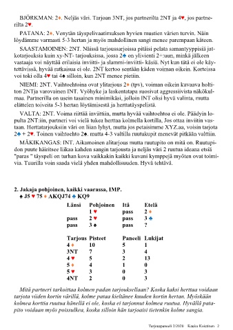 SAASTAMOINEN: 2NT. Näissä tarjoussarjoissa pitäisi pelata samantyyppisiä jat-