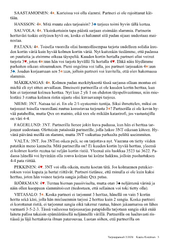 SAASTAMOINEN: 4♦. Korteissa voi olla slammi. Partneri ei ole rajoittanut kät-