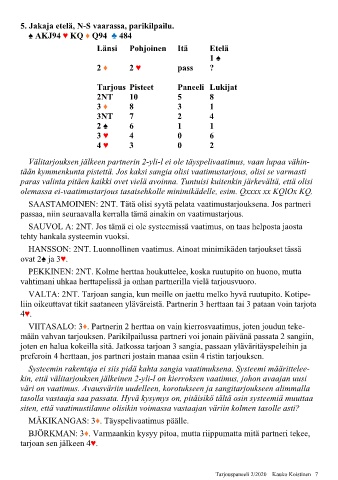 SAASTAMOINEN: 2NT. Tätä olisi syytä pelata vaatimustarjouksena. Jos partneri