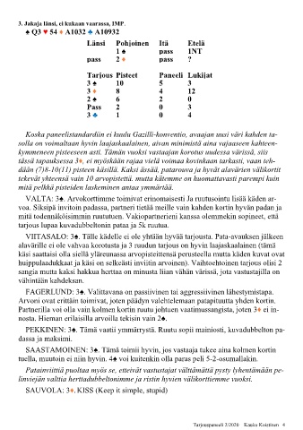 SAASTAMOINEN: 3♠. Tämä toimii hyvin, jos vastaaja tukee aina kolmen kortin