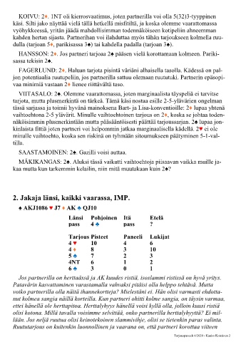 MÄKIKANGAS: 2♠. Aluksi tässä vaikutti vaihtoehtoja piisaavan vaikka muille ja-