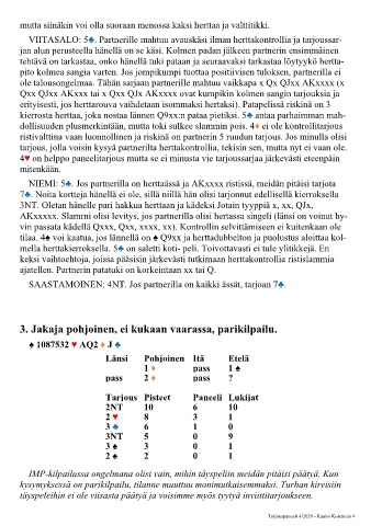 jan alun perusteella hänellä on se käsi. Kolmen padan jälkeen partnerin ensimmäinen