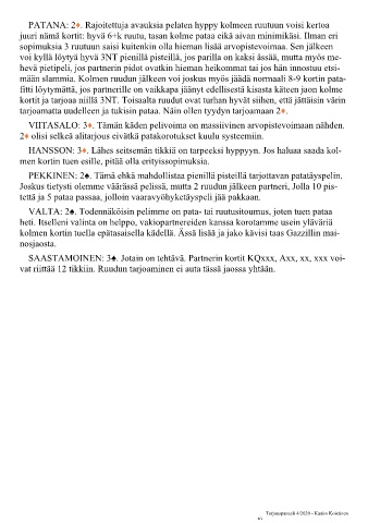 PEKKINEN: 2♠. Tämä ehkä mahdollistaa pienillä pisteillä tarjottavan patatäyspelin.